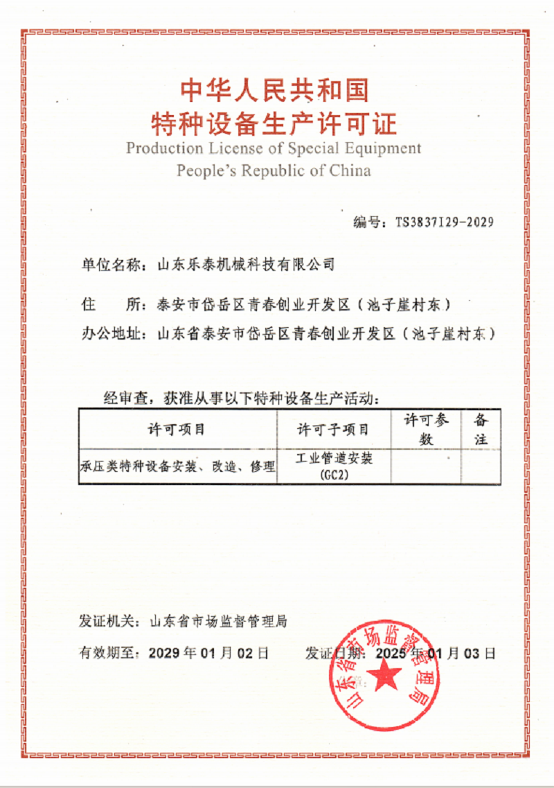 山東樂泰機(jī)械科技有限公司始建于2013年,是一家股份制高新技術(shù)企業(yè),擁有140多名各類中高級(jí)技術(shù)和技能人才,購(gòu)置了大型激光切割機(jī)等先進(jìn)生產(chǎn)設(shè)備和粗糙度檢測(cè)儀等精密檢測(cè)設(shè)備。公司具有D級(jí)壓力容器的設(shè)計(jì)及制造資質(zhì),通過了ISO9001質(zhì)量管理體系認(rèn)證和3C認(rèn)證。 公司專注于中厚板及薄壁不銹鋼非標(biāo)儲(chǔ)罐、發(fā)酵罐、種子罐、臥式結(jié)晶機(jī)、立式結(jié)晶罐、提取罐、雙層酒精罐、沉降罐、流化床等干燥系統(tǒng)設(shè)備的設(shè)計(jì)及制造。我們致力于為淀粉糖、生物發(fā)酵、制藥、釀酒、調(diào)味品、飲料、果蔬汁、乳制品、大豆分離蛋白、酶制劑、樹脂吸附等領(lǐng)域提供不銹鋼成套裝備。多年來,我們已經(jīng)為全國(guó)百家客戶提供了服務(wù),并成功出口產(chǎn)品到法國(guó)、智利、美國(guó)、土耳其和越南等國(guó)家。